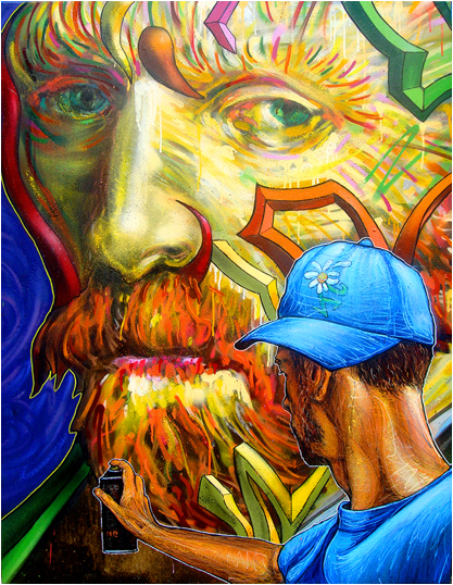 Sa "rencontre" avec Van Gogh va donner une nouvelle direction à son travail. Quand il apprend que Vincent peignait dans les mêmes coins que lui, il se passionne pour l'artiste, reproduit plusieurs tableaux en les réinterprétant avec son style. Il peint aussi des portraits de van Gogh sur les murs.