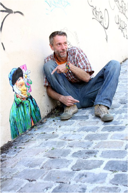 En 1993, quand des amis lui proposent de participer à une mission humanitaire à Timichoara, en Roumanie, il n'hésite pas. Engagé comme vidéaste, il va en fait décorer les chambres d’hôpital des enfants orphelins atteints du sida. D'autres missions vont suivre : en 2004, il peint des fleurs dans les township à Kliptown, Soweto, South Africa (film : « Flowers of Kliptown »), puis parcourt le monde (Soweto, Santiago, Ouakam) pour embellir de ses dessins et de ses peintures les murs, les façades, les palissades des quartiers déshérités. En faisant participer les enfants à sa création, il crée un lien social fort.