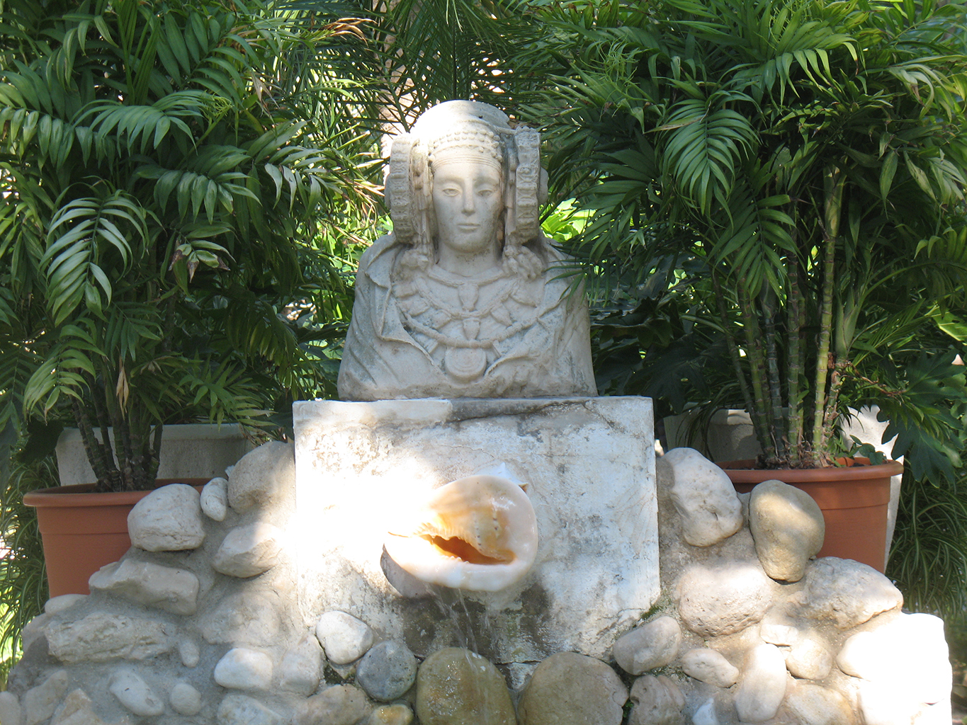 La Dame d'Elche, bien sûr, ce buste de femme d'une beauté extraordinaire dont on ne sait s'il est celui d'une Princesse, d'une reine ou d'une dame de haut rang. Son visage fin aux lèvres colorées est couvert d'une coiffe remarquable avec deux grands "tambours" qui couvrent les oreilles d'où pendent des petites chaînes liées à une lanière qui lui ceint le front. Elle porte une tunique de lin, une mantille tenue par un peigne et un manteau pesant. Elle porte un beau collier, des bijoux d'or. Les traces nombreuses de polychromie laissent penser qu'elle était toute entière peinte et maquillée.