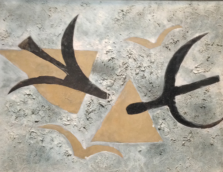 Au retour de la guerre de 40 où il a été gravement blessé, et jusqu'à son décès en 1961, Braque revient aux paysages, aux portraits, abandonnant les natures mortes pour réaliser des représentations plus figuratives. Ses deux derniers thèmes : l'atelier de l'artiste et les oiseaux sont d'une beauté étrange inattendue et impressionnante.