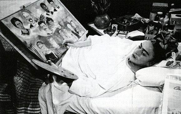 Souvent au lit, notamment après une opération où elle est restée un an au lit, elle disposait de peu de modèles (son médecins, ses amis), et a donc réalisé beaucoup d'autoportraits "de la personne qu'elle connait le mieux".