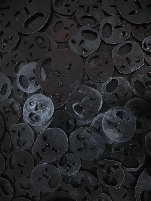 Des plaques de ferraille vaguement arrondies avec quatre trous,